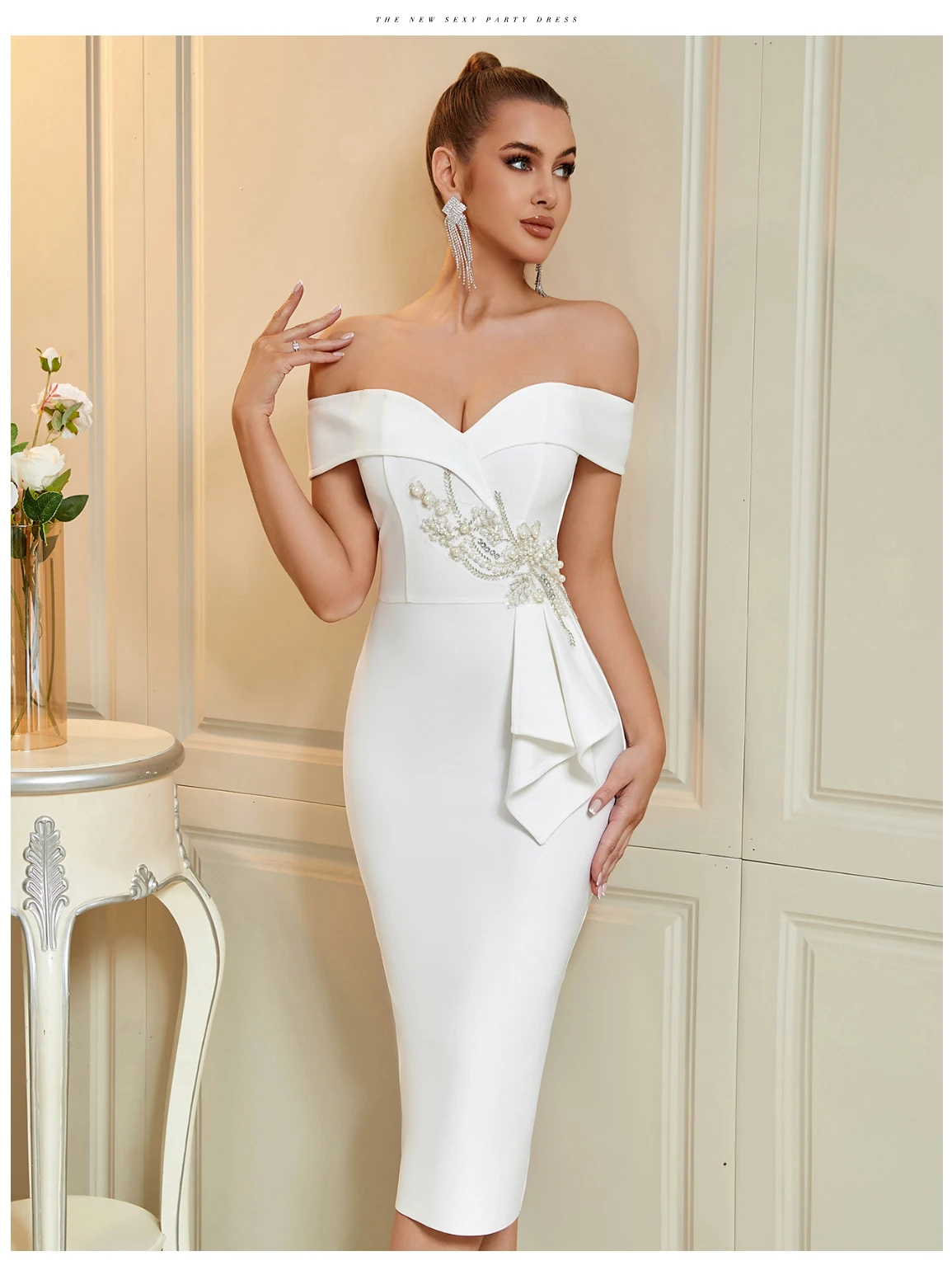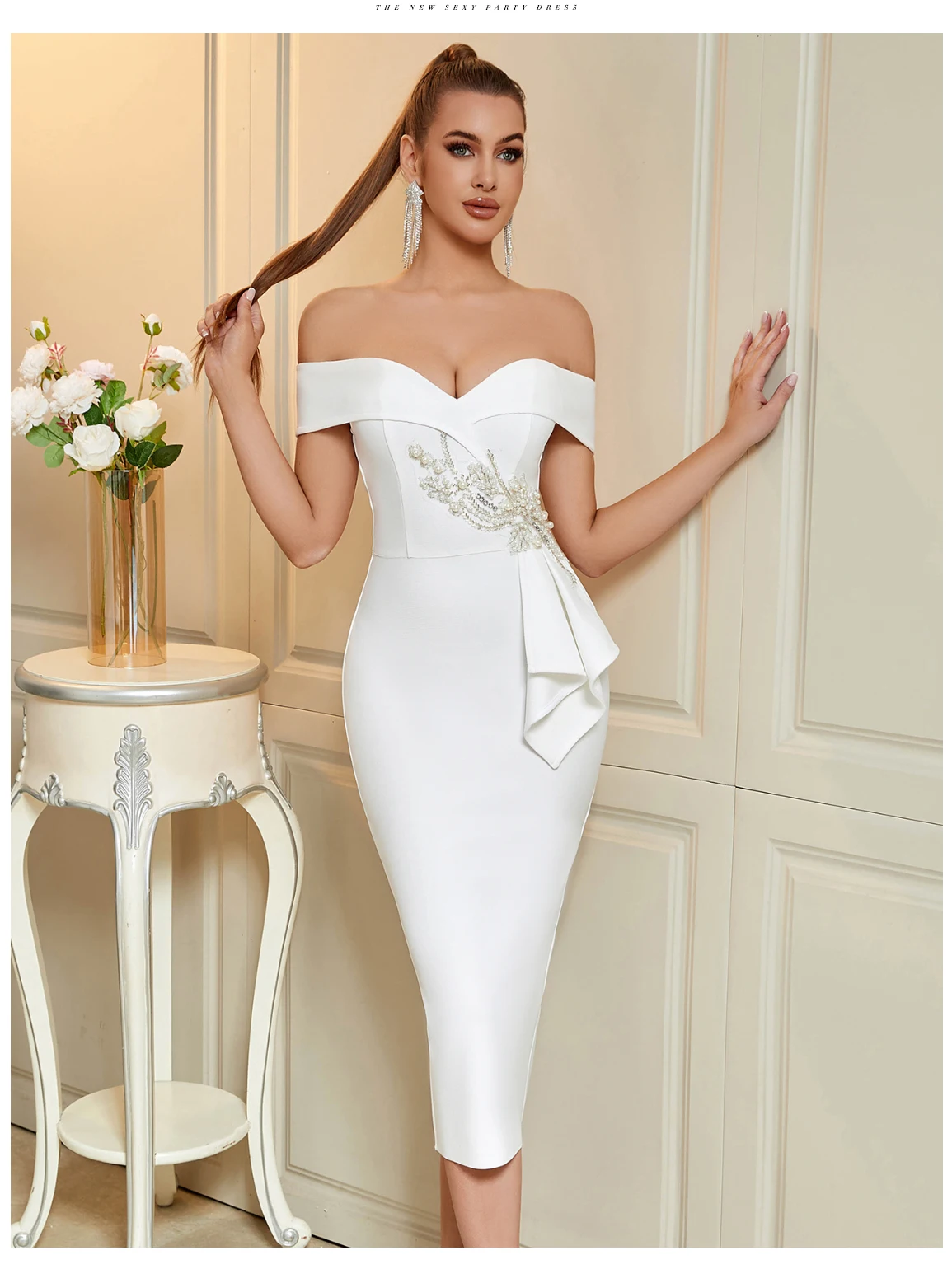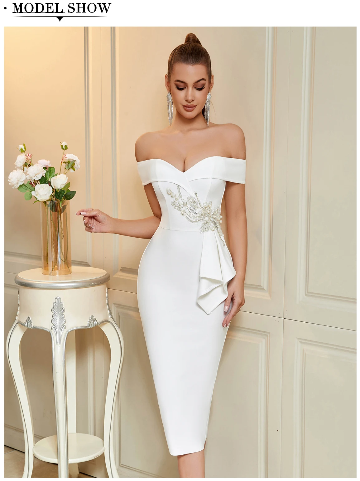 Olivia New Summer For Women Sleeveless Bodycon Club Party Dresses Vestidos Off Shoulder Beaded Floral Bandage Dress