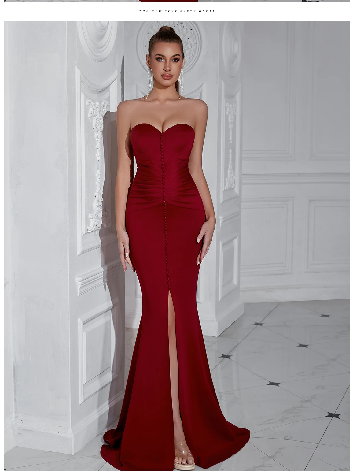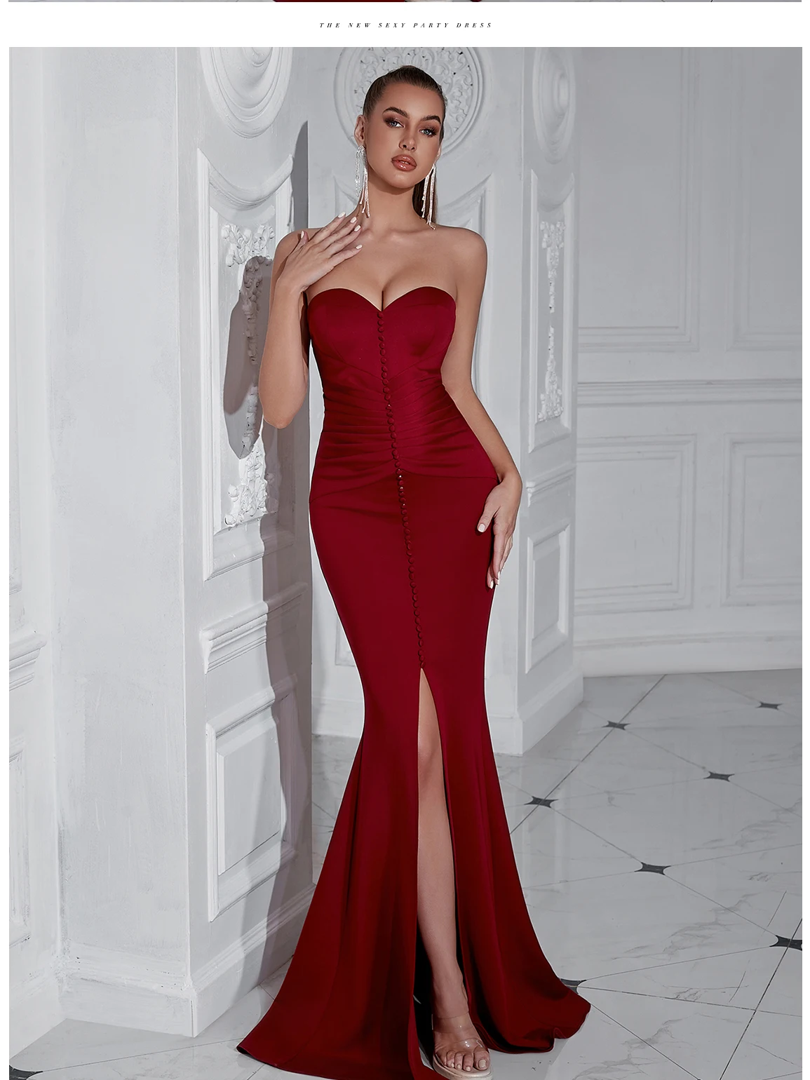 Olivia Women's Maxi Long Party Bodycon Orange Sexy Strapless Evening Birthday Club Outfits Summer Vestidos with Elegant Bandage Dresses